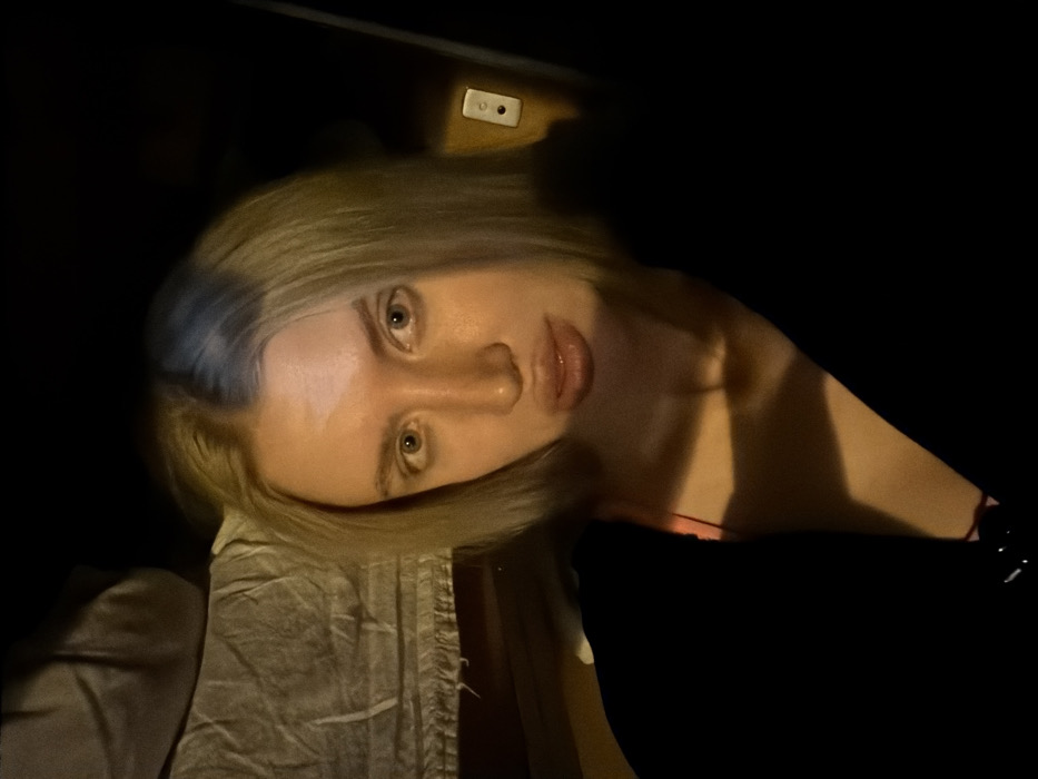 - "The image displays a fair-skinned individual, likely female, with shoulder-length blonde hair, directly facing the camera" by FM-IjUpS2, licensed under CC BY 4.0