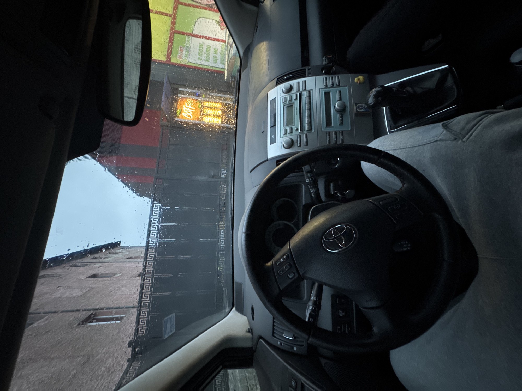 A view from inside a car, likely a Toyota, parked on a rainy day in Dupnitsa, Bulgaria