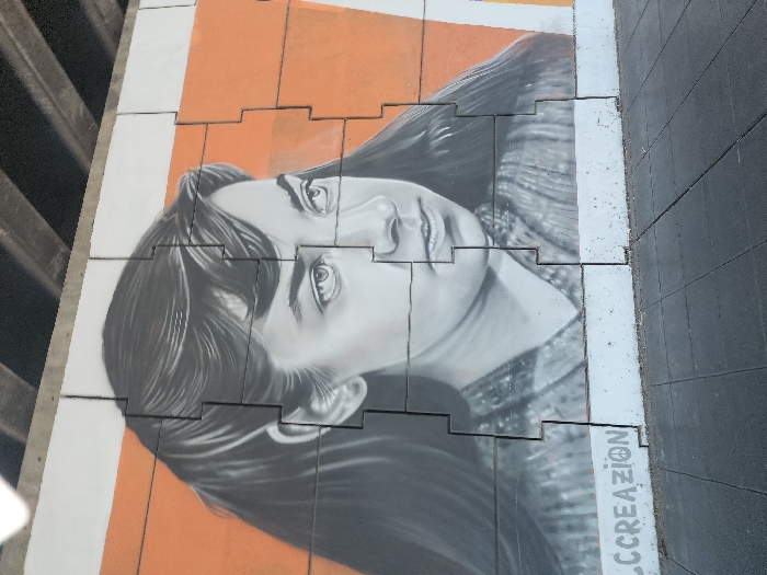 - "A forensic examination of the image reveals a large mural painted on a segmented concrete wall located under an overpass or bridge structure in Unknown, Unknown" by FM-FRAqu1, licensed under CC BY 4.0