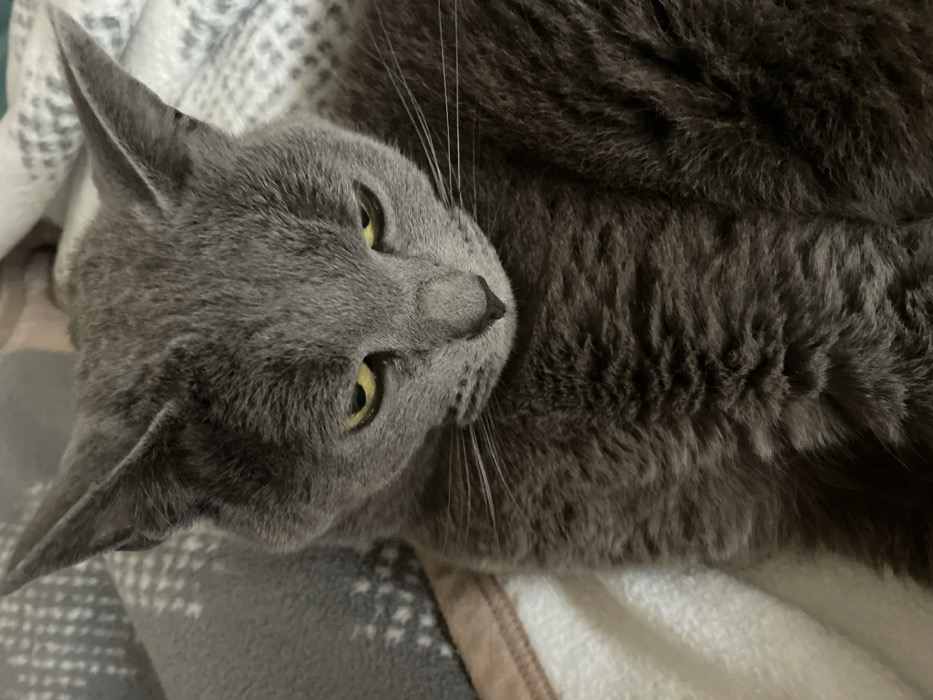 - "A close-up image captures a charcoal grey, short-haired domestic cat resting indoors in Budva, Montenegro" by FM-srcYD2, licensed under CC BY 4.0