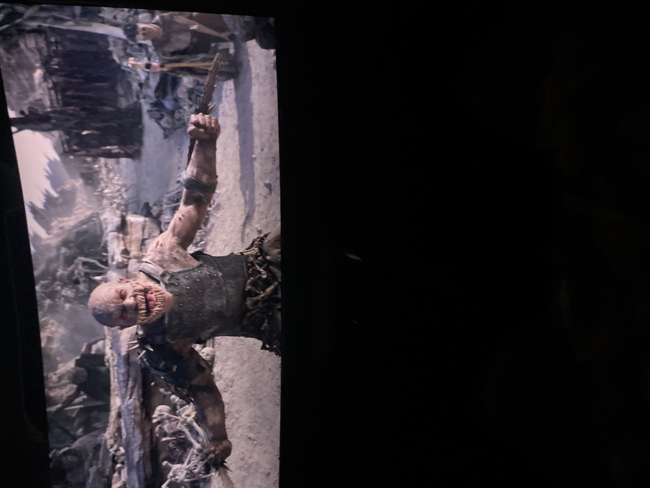 - "The image displays a wide-screen view of a fantasy scene, likely from a film or video game, depicted on a screen within a dark environment" by FM-MXCJ03, licensed under CC BY 4.0