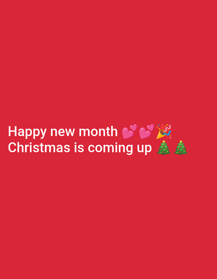 A red background displays the text "Happy new month" followed by "Christmas is coming up"