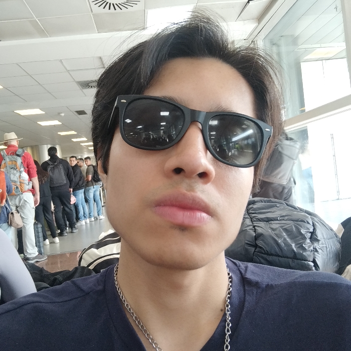 - "The image displays a selfie-style close-up of a person, likely male, wearing black Wayfarer-style sunglasses, a dark blue crew-neck t-shirt, and a silver-colored chain necklace" by FM-ZqBmD2, licensed under CC BY 4.0
