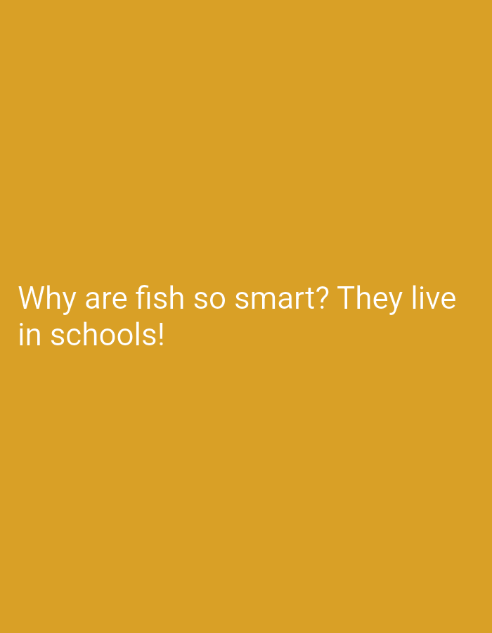The image is a solid gold color with white text that says "Why are fish so smart? They live in schools!"