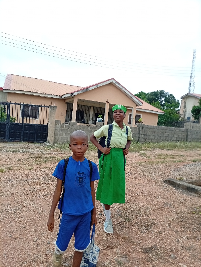 - "The image captures two uniformed children standing on an unpaved, reddish-brown gravel path in Adankolo, Nigeria, against a backdrop of residential buildings under an overcast sky" by FM-EEWgo2, licensed under CC BY 4.0