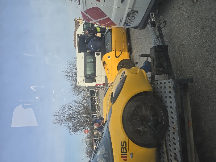 - "An outdoor scene in Graf Ignatievo, Bulgaria, depicts two yellow sports cars, resembling Lotus Elise models with an "IBS" logo on the visible foreground vehicle, secured on a metal flatbed trailer" by FM-IYQQn1, licensed under CC BY 4.0