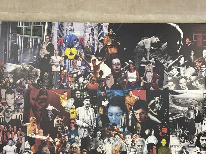 - "This image displays a large, complex photographic collage artwork mounted on a plain, light grey wall within an indoor exhibition space in Paris, France" by FM-2VH5m1, licensed under CC BY 4.0