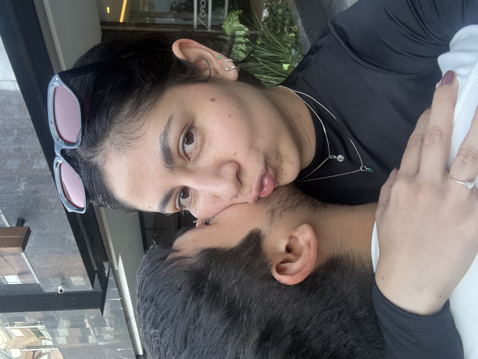 - "A woman in a black shirt and sunglasses is kissing a man with dark hair and a beard" by FM-rSR2K3, licensed under CC BY 4.0