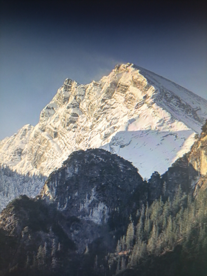 - "snow-capped mountain peak in the distance with dark green trees in the foreground" by FM-4EAOj1, licensed under CC BY 4.0