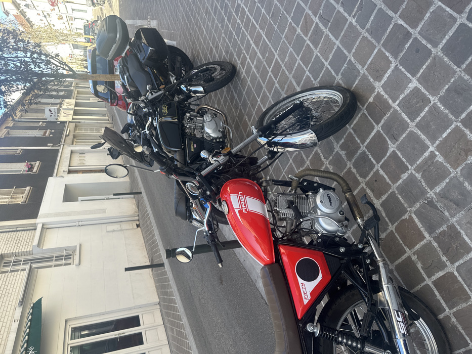 - "The image depicts a street scene in Saint-Germain-en-Laye, France, featuring three motorcycles parked on a cobblestone pavement" by FM-zGYJv1, licensed under CC BY 4.0