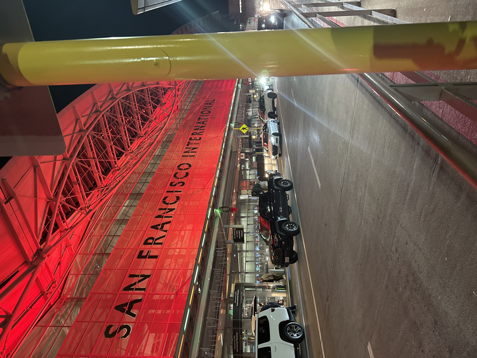 San Francisco International Airport is illuminated in red