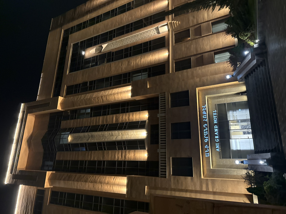 The Ani Grand Hotel is depicted at night in Yerevan, Armenia, specifically located at Tigran Mets Ave 4/6