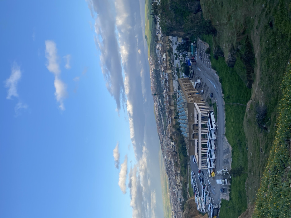- "The image displays a panoramic, elevated view of Fez, Morocco, with the city's main bus terminal prominent in the midground" by FM-ZyJNa2, licensed under CC BY 4.0