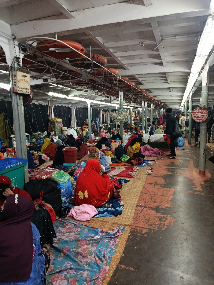 - "The scene depicts the crowded, lower passenger deck of a large vessel, likely a ferry or launch, operating from the city of Keraniganj, Bangladesh" by FM-1YwHv2, licensed under CC BY 4.0