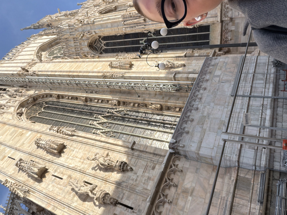 - "A low-angle photograph captures a significant portion of the Milan Cathedral (Duomo di Milano) facade in Milan, Italy, under a clear blue sky" by FM-Tuh0l1, licensed under CC BY 4.0