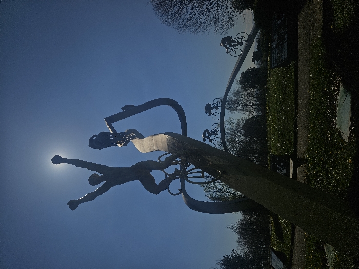 - "A cycling monument is depicted under a clear, deep blue sky in Ger, France" by FM-bCw3N2, licensed under CC BY 4.0