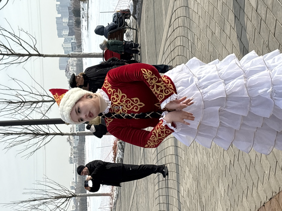 - "A young woman in traditional Kazakh attire stands on a paved promenade under a bright sky in Astana, Kazakhstan" by FM-Ju5AS2, licensed under CC BY 4.0