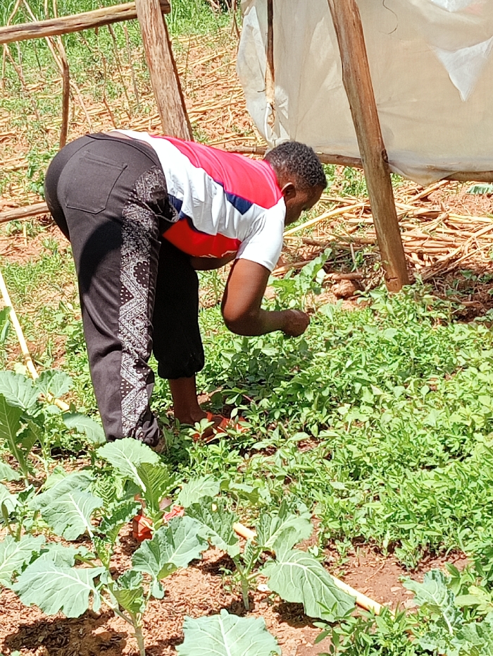 The scene captures an outdoor agricultural area within Ngenyilel ward, Kenya, under bright daylight