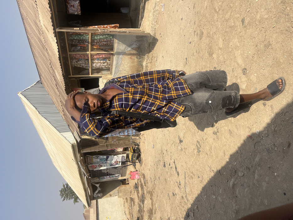 A young male stands on a dirt path in Dzhidu, Nigeria, under a clear sky