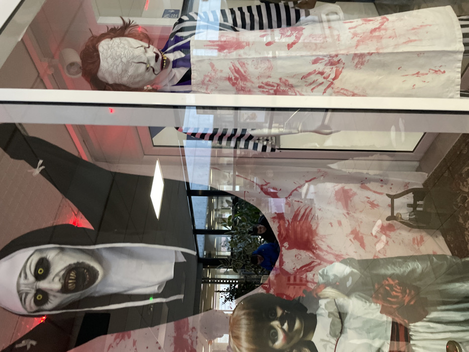 - "A retail display window in Schiltigheim, France, exhibits a horror-themed arrangement of props" by FM-WLxFl1, licensed under CC BY 4.0