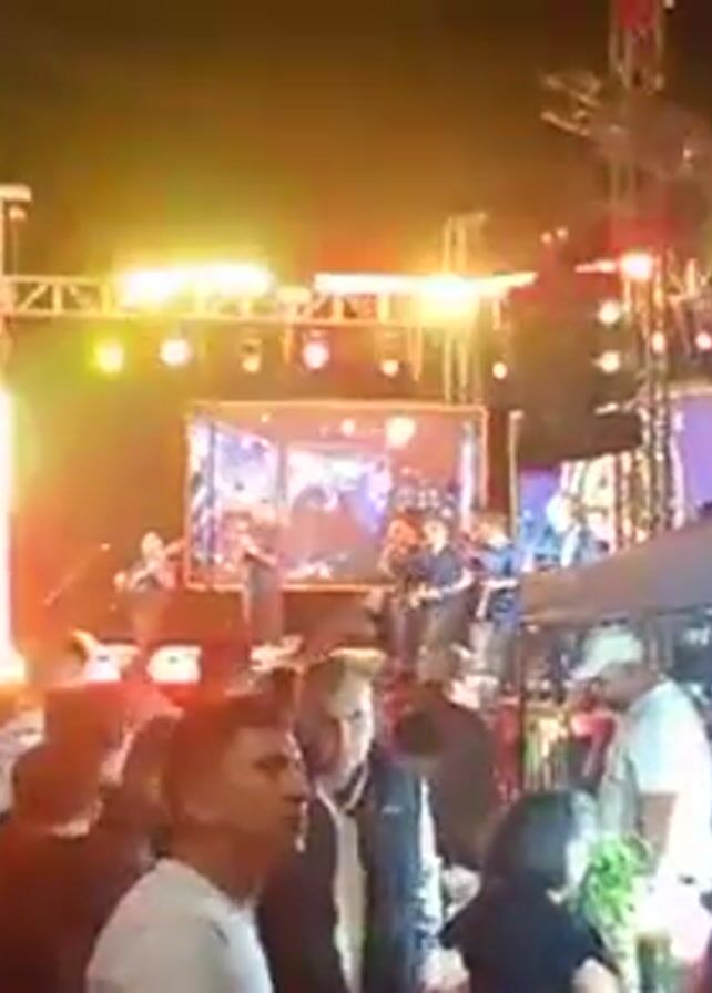 A video shows a band performing on an outdoor stage