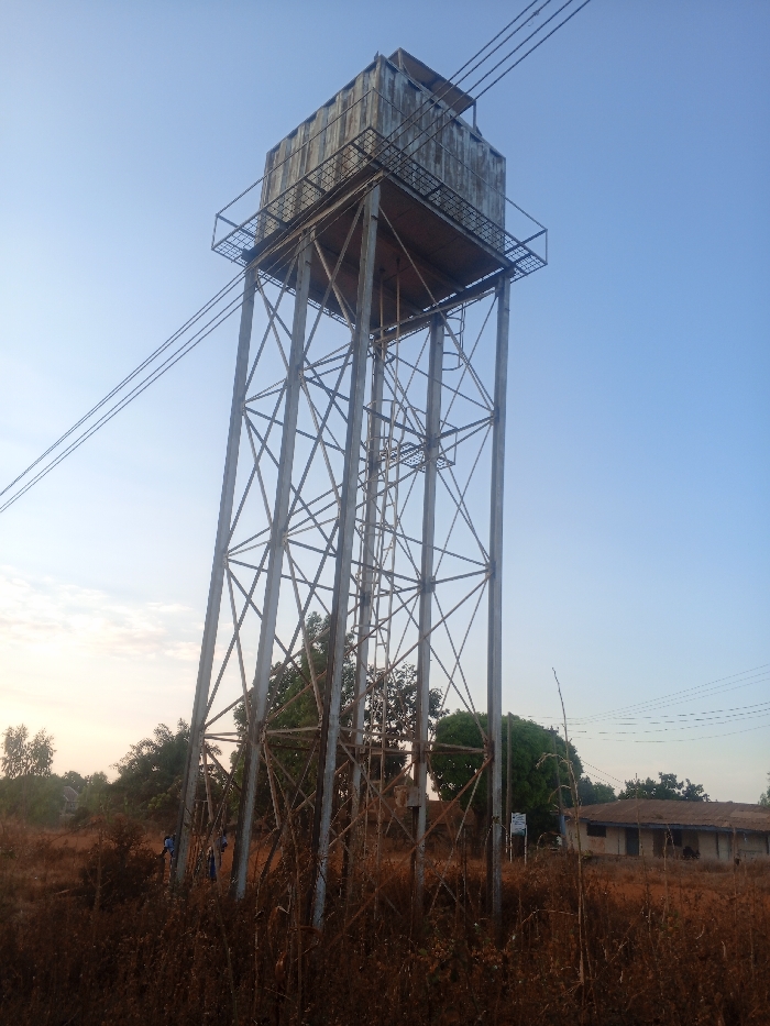 - "A tall water tower dominates the scene, its steel frame contrasting against the pale blue sky" by FM-Cpyxj1, licensed under CC BY 4.0