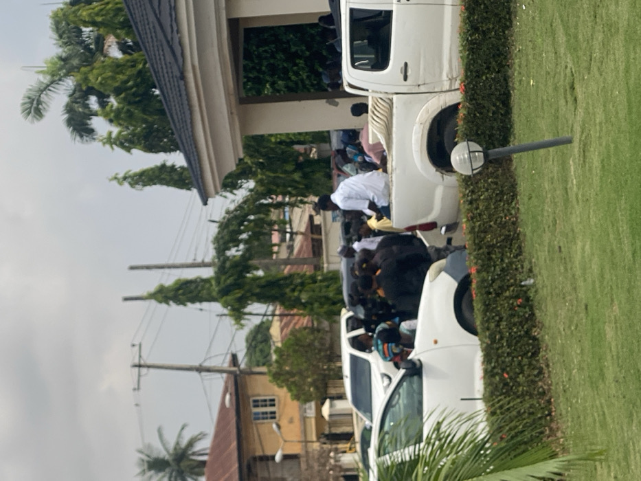 The image depicts an outdoor scene in Lokoja, Nigeria, under an overcast sky