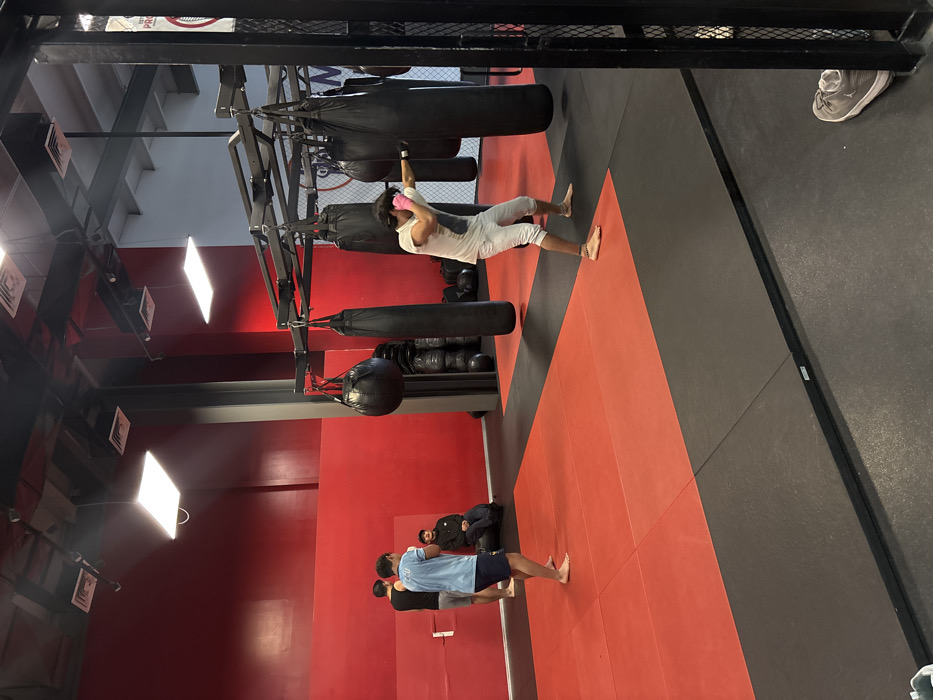 This image depicts an indoor boxing or martial arts gym located in San Pedro Cholula, Mexico