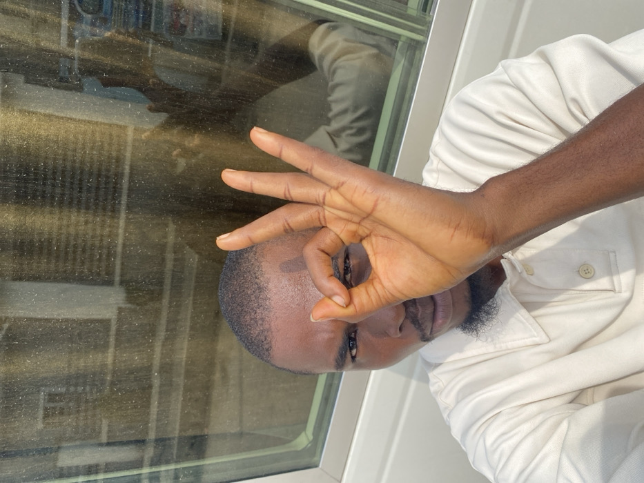 An individual, identified as a young adult male of apparent African descent, is depicted in a medium-shot selfie
