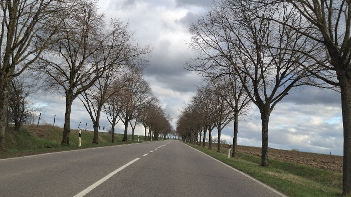 - "An empty, straight asphalt road, located in Elvange, Luxembourg, extends into the distance under an overcast sky" by FM-VH5CK2, licensed under CC BY 4.0
