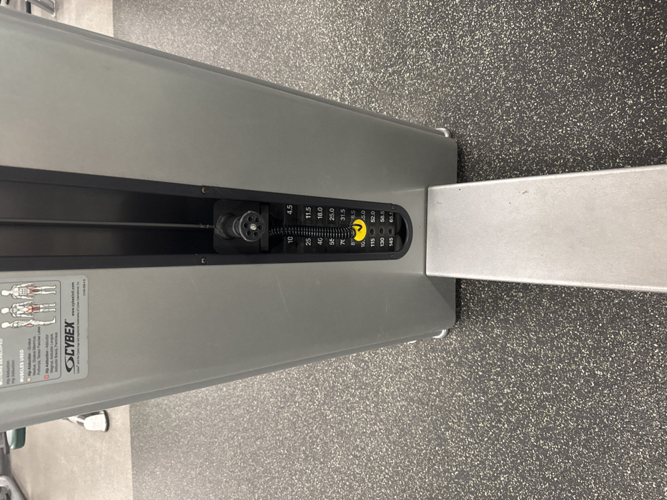 - "The image displays a close-up, upward-angled view of a Cybex brand weight training machine located in a gym in Wellesley, United States" by FM-VIgzF2, licensed under CC BY 4.0