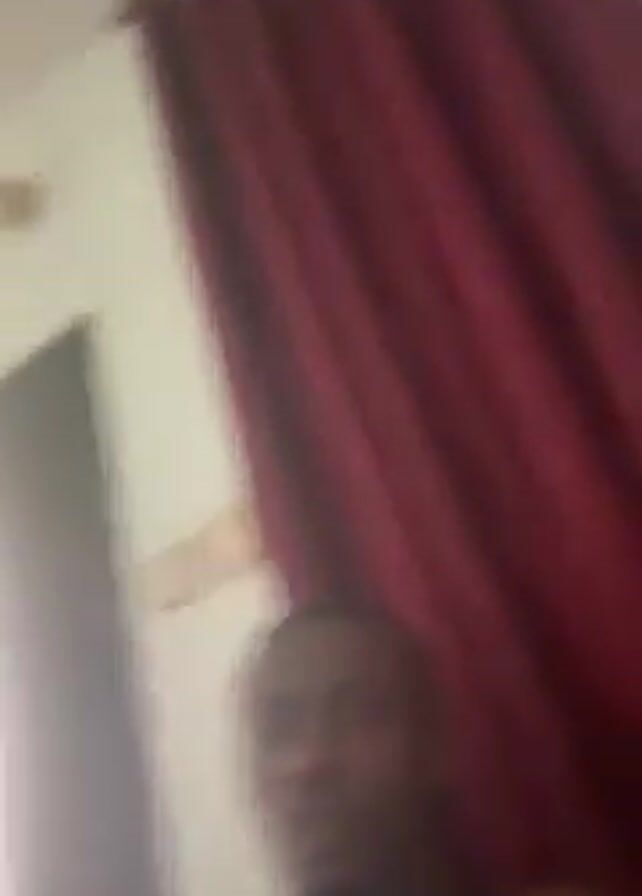 A man with short hair and a beard is sitting in a room with white walls. There is a window on the left side of the frame with sunlight shining through it. To the right is a maroon curtain hanging down from a curtain rod. The wall has a light fixture and the letters "NM" mounted on it. The man is looking to his right and talking.