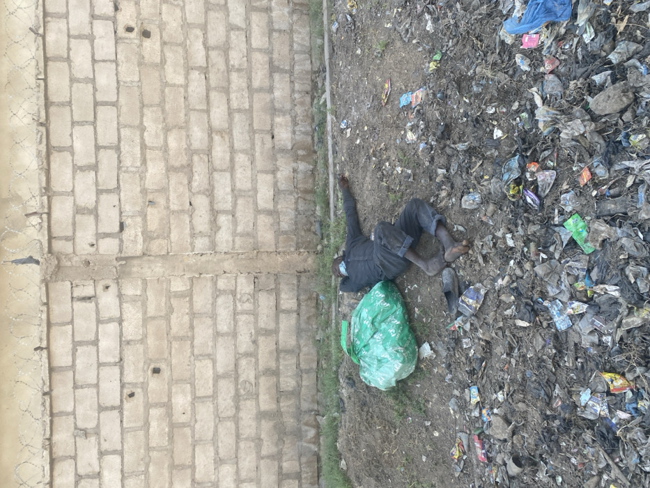 - "In Fagge D2, Nigeria, an individual is observed lying on their left side on a dirt and refuse-strewn patch of ground" by FM-98raS2, licensed under CC BY 4.0