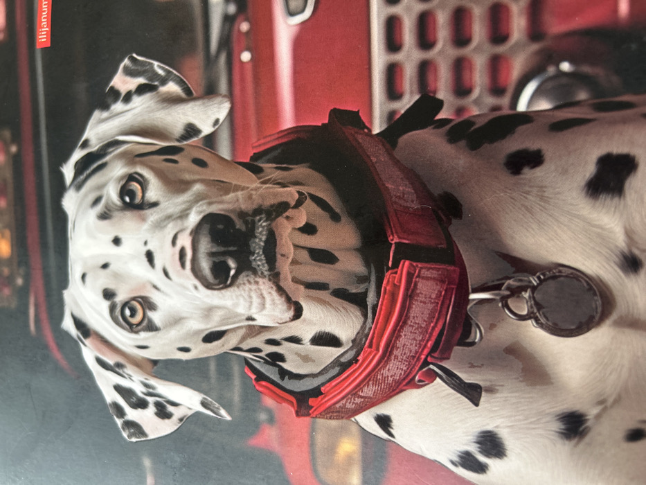 - "The image displays a head-on, chest-up portrait of a Dalmatian dog" by FM-zKxrm1, licensed under CC BY 4.0