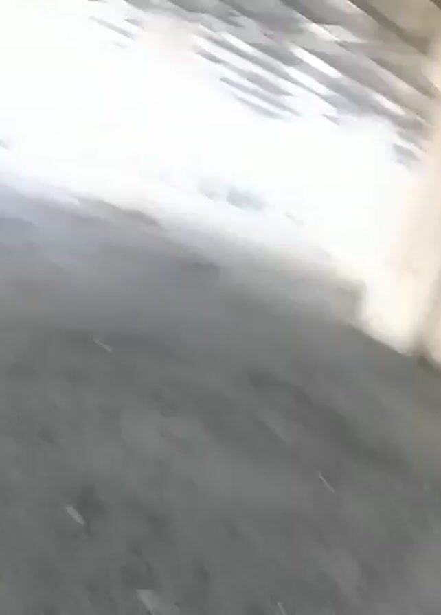 interior of what seems to be a large, empty warehouse. The floor is concrete and the ceiling has exposed beams. Large, bright windows punctuate the space, allowing natural light in. There are several support pillars that are painted a light, neutral color. Several individuals are seen inline skating throughout the space.