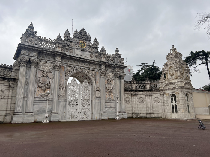 - "The image displays the ornate main entrance gate and adjacent structures of Dolmabahçe Palace in Beşiktaş, Istanbul, Turkey, under an overcast sky" by FM-A5lOj2, licensed under CC BY 4.0
