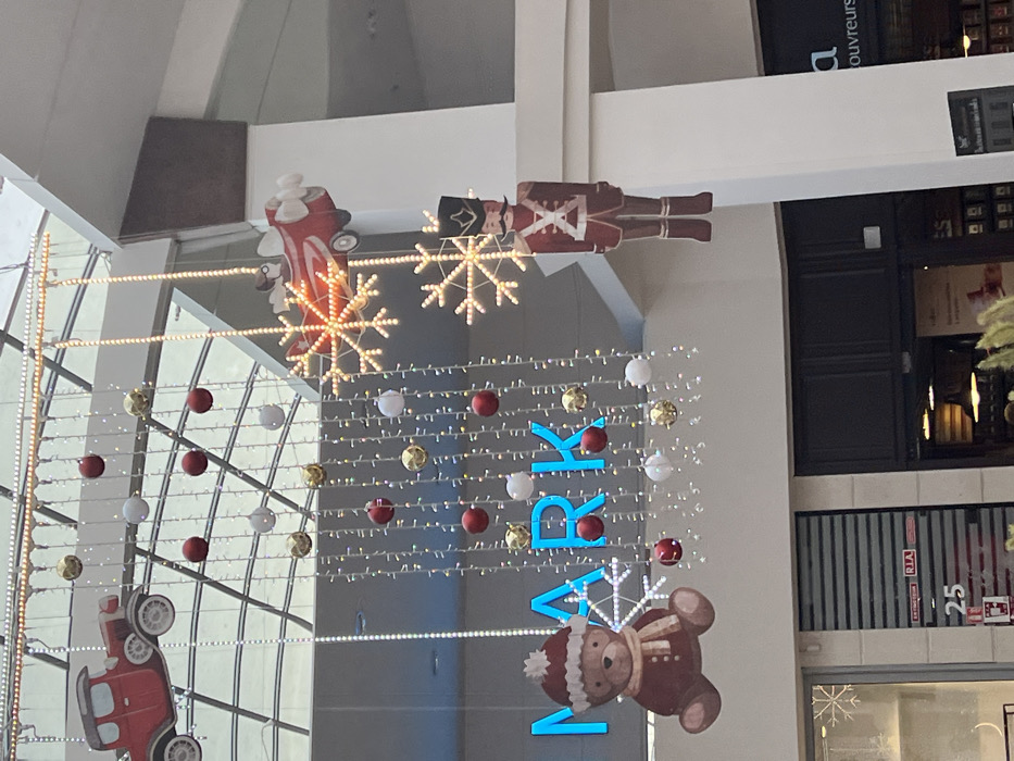 - "This image displays the interior of a multi-level shopping mall, located in Mondeville, France, decorated for a holiday season, likely Christmas or winter" by FM-RPGCC2, licensed under CC BY 4.0