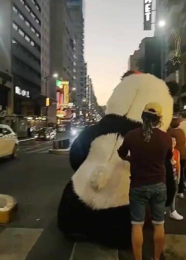 - "large panda costume walking across a crosswalk on a city street" by FM-pTpdg1, licensed under CC BY 4.0