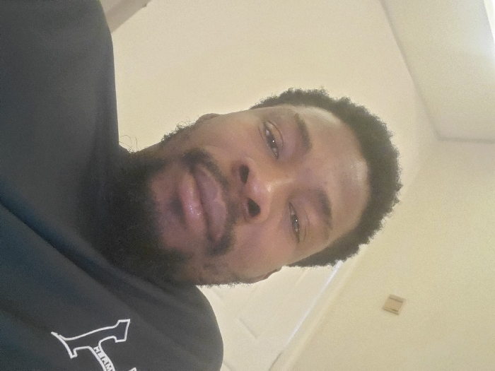 - "The image depicts a close-up, low-angle portrait of one adult male, appearing to be of African descent, with short dark curly hair, a full dark beard, and a mustache" by FM-zWZX23, licensed under CC BY 4.0