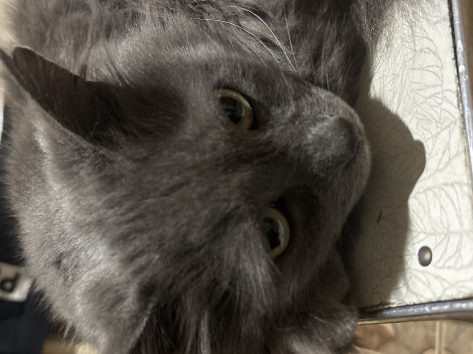 - "A grey cat lies on its back, its head turned towards the camera" by FM-2g8Zp2, licensed under CC BY 4.0