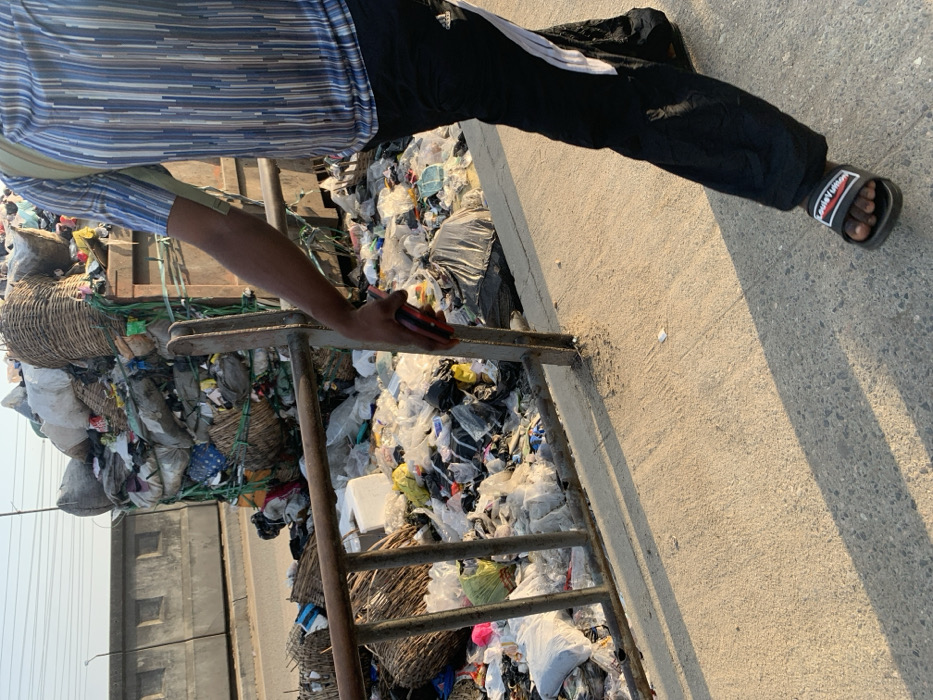 In Lekki, Nigeria, an outdoor scene depicts a large accumulation of mixed refuse bordering a concrete walkway