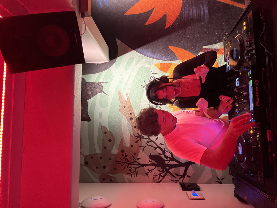 - "The image depicts two individuals, a male and a female, operating professional DJ equipment within an interior nightlife venue in San Diego, United States of America" by FM-trWLz1, licensed under CC BY 4.0