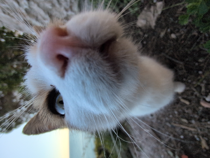 - "An extreme close-up, low-angle shot in Mirište, Montenegro, depicts the head and upper body of a calico cat" by FM-5itlR2, licensed under CC BY 4.0