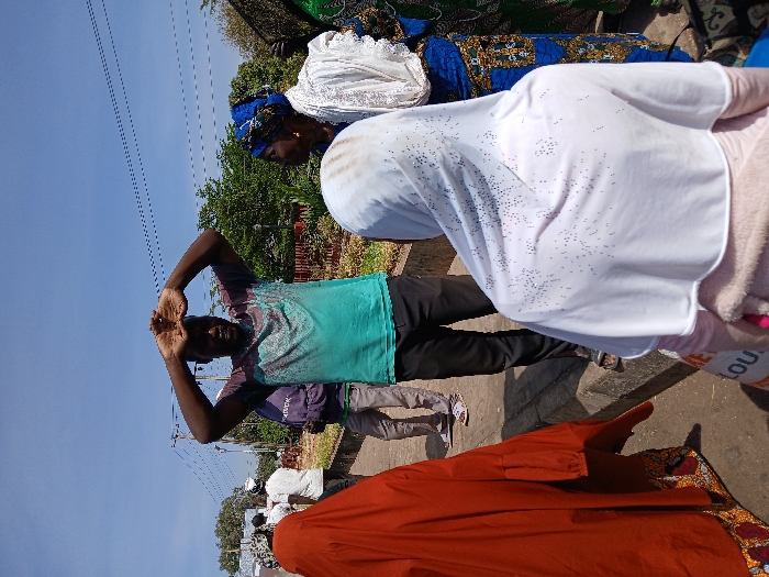 The image portrays an outdoor scene in Barakin Lerawi, Nigeria, under a clear blue sky