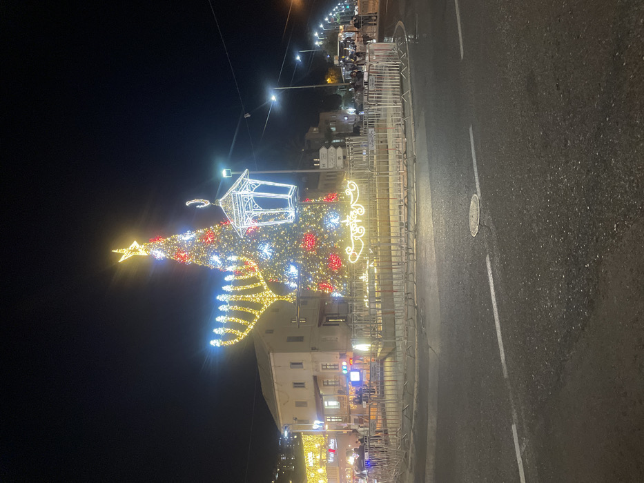 - "The image depicts a nighttime urban scene in the German Colony, Haifa, Israel, characterized by prominent interfaith holiday decorations" by FM-W9SSa2, licensed under CC BY 4.0