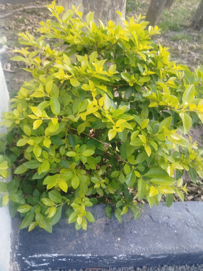 - "The image displays a dense shrub with small, ovate leaves, exhibiting a color spectrum from bright yellowish-green at the top and outer portions to darker green deeper within the foliage" by FM-gef792, licensed under CC BY 4.0
