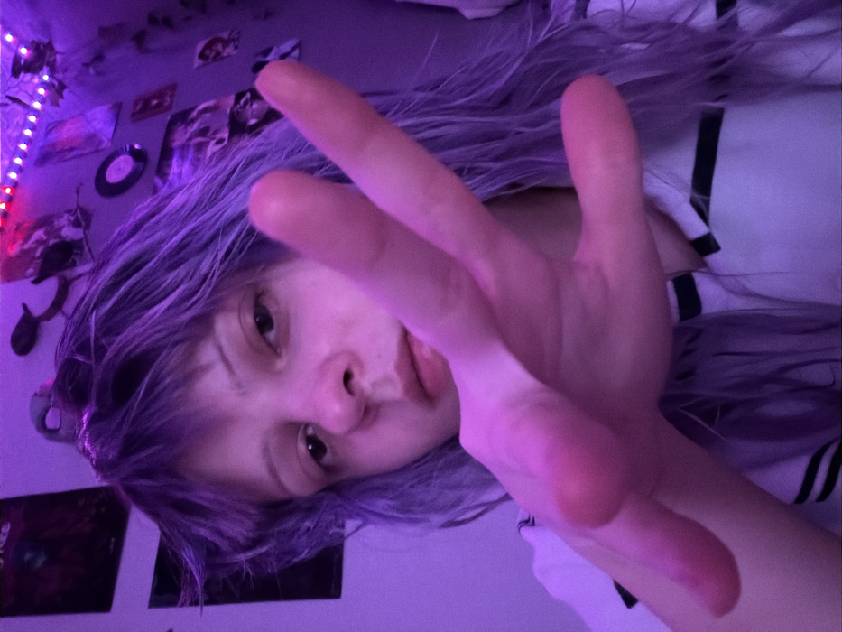 - "An individual with light purple-dyed, shoulder-length hair and bangs is depicted in a medium-close-up indoor shot, presumably in Radkevshchina, Russia" by FM-3WDDJ2, licensed under CC BY 4.0