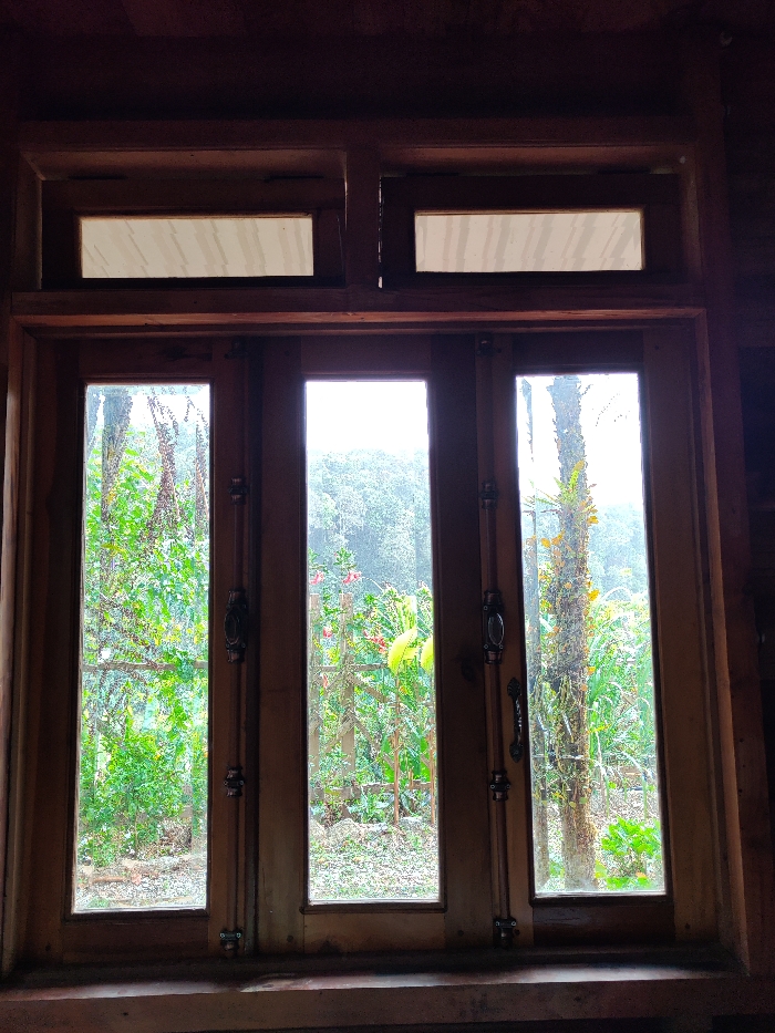 - "The image displays an interior perspective through a closed wooden window looking out onto a lush green outdoor environment in Lán Tranh, Vietnam" by FM-WroXJ3, licensed under CC BY 4.0