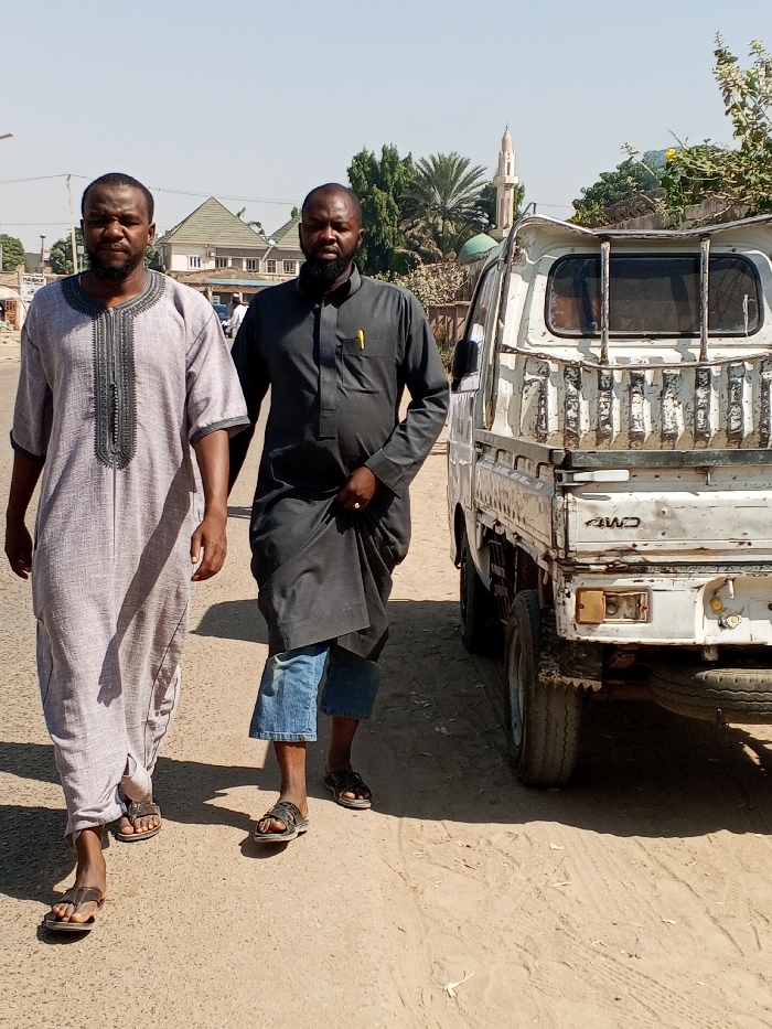 - "This image depicts two adult males walking side-by-side on an unpaved road in Tarauni, Nigeria, under bright daylight" by FM-dHl4F2, licensed under CC BY 4.0