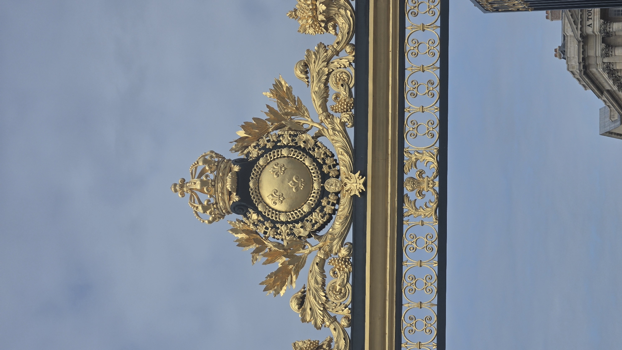 - "The image presents a close-up, low-angle view of the central gilded crest of the Grille Royale (Golden Gate) at the Palace of Versailles, in Versailles, France" by FM-qBOnJ2, licensed under CC BY 4.0